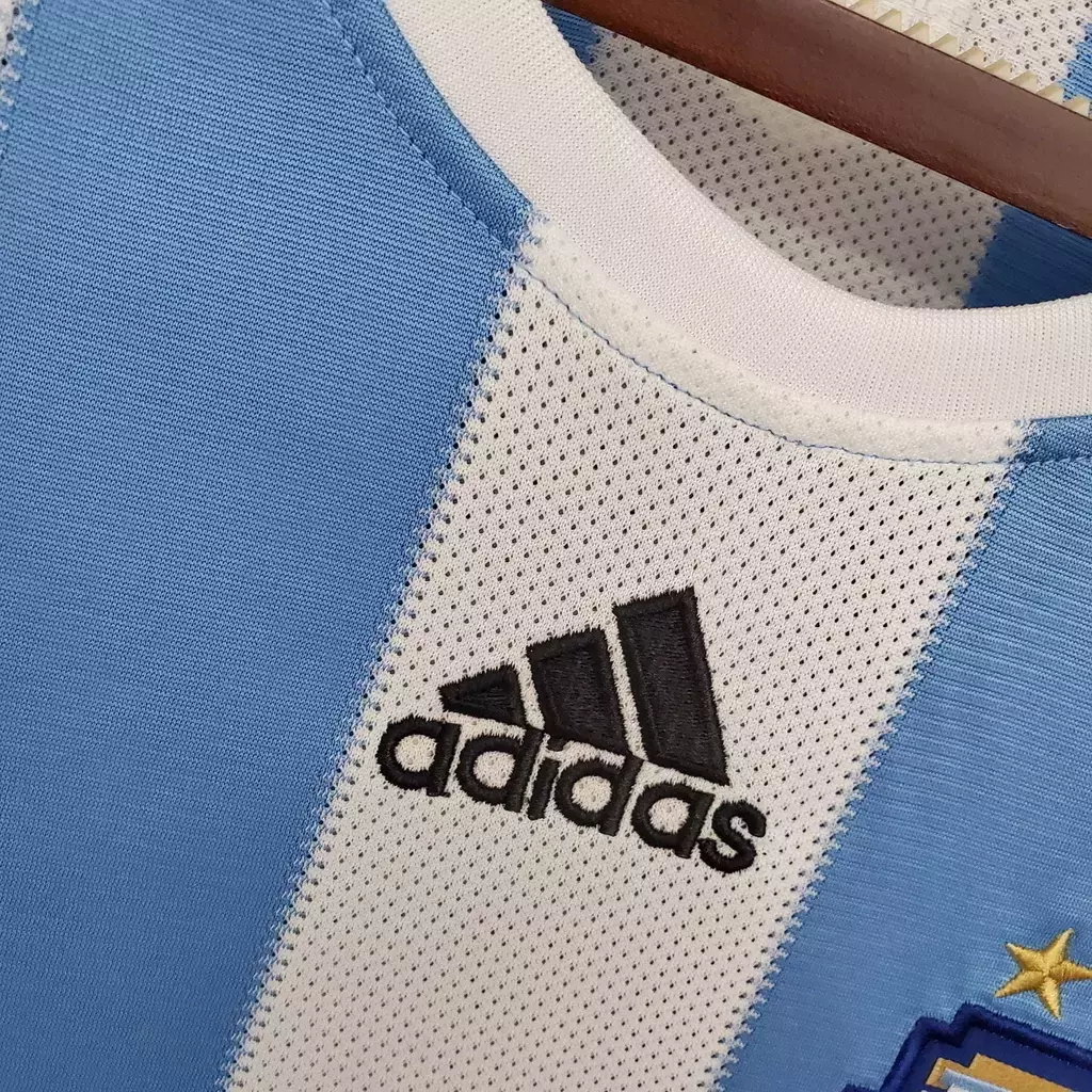 A Camisa Retrô da Seleção da Argentina I – 2010, feita pela Adidas, azul e branca com as icônicas listras verticais, marcou uma das Copas mais emocionantes (e controversas) da história recente do país.